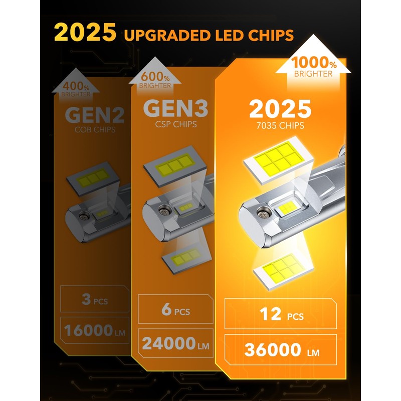 - BETTER DRIVING EXPERIENCE: OXILAM 2025's bulbs are equipped with focused beam chip technology that will not dazzle oncoming car drivers or increase glare. The 12 high-brightness chips, it provides a farther and wider field of view without any shadows or dark spots.