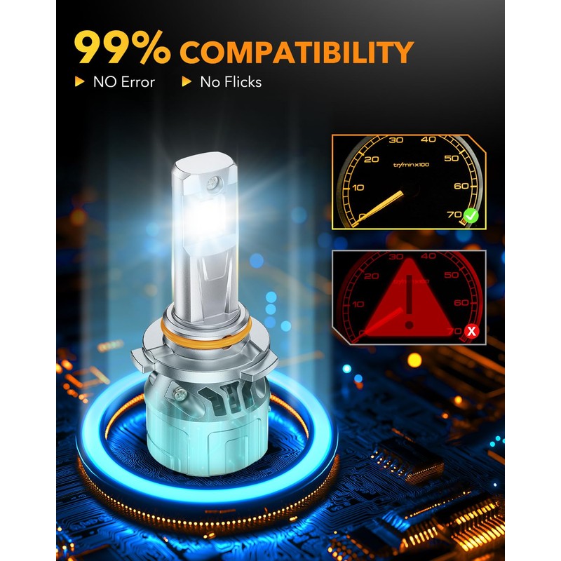 - More Compatibility: With the built-in latest linear intelligent IC driver, OXILAM HB3-9005 bulbs are designed to work seamlessly with 99% of vehicles, without flickering, radio interference, or error codes on the dashboard.. For some sensitive vehicles, our team is here to provide additional decoders for a perfect fit.