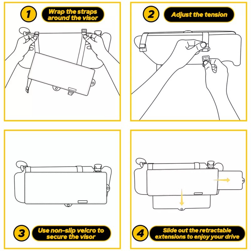 This sun visor extender features two retractable sliders. It offers full coverage with no gaps for sun glare to sneak through and allows you to see road clearly even in extreme sunlight.