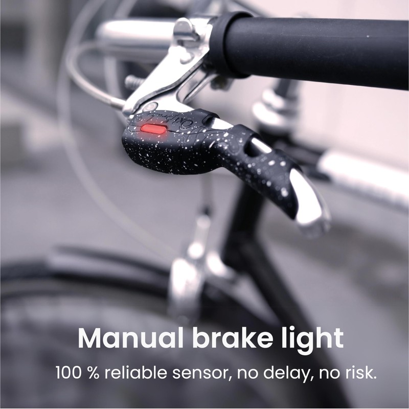 - BRAKING FUNCTION: OxiTurn integrates a brake light function that can be activated with the OxiBrake accessory (included in this pack). When braking, the light lights up more intensely in red to warn the following vehicles of the deceleration. The products in the pack are already paired. No app is necessary.