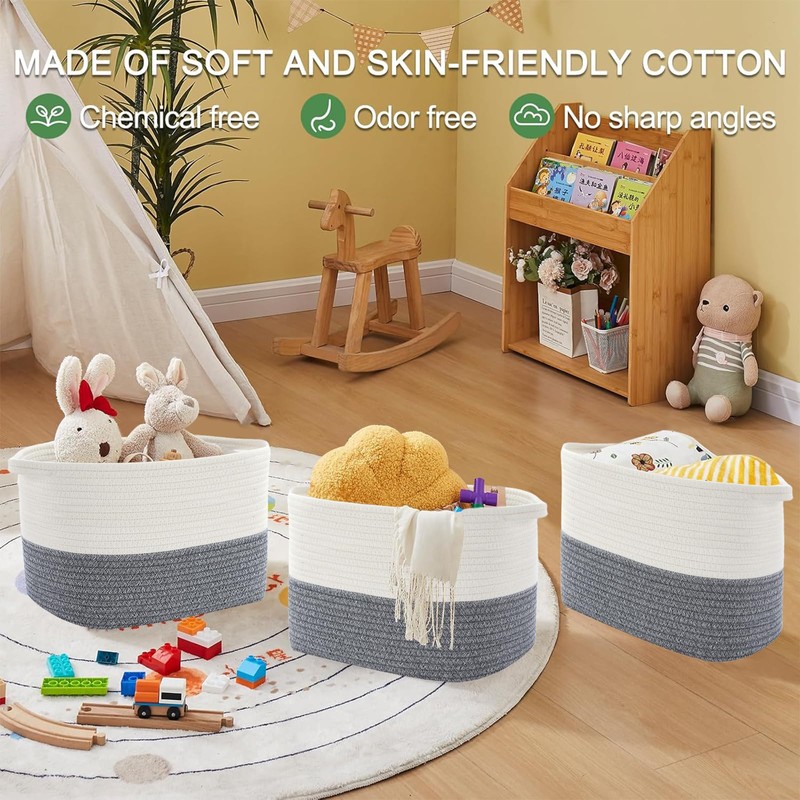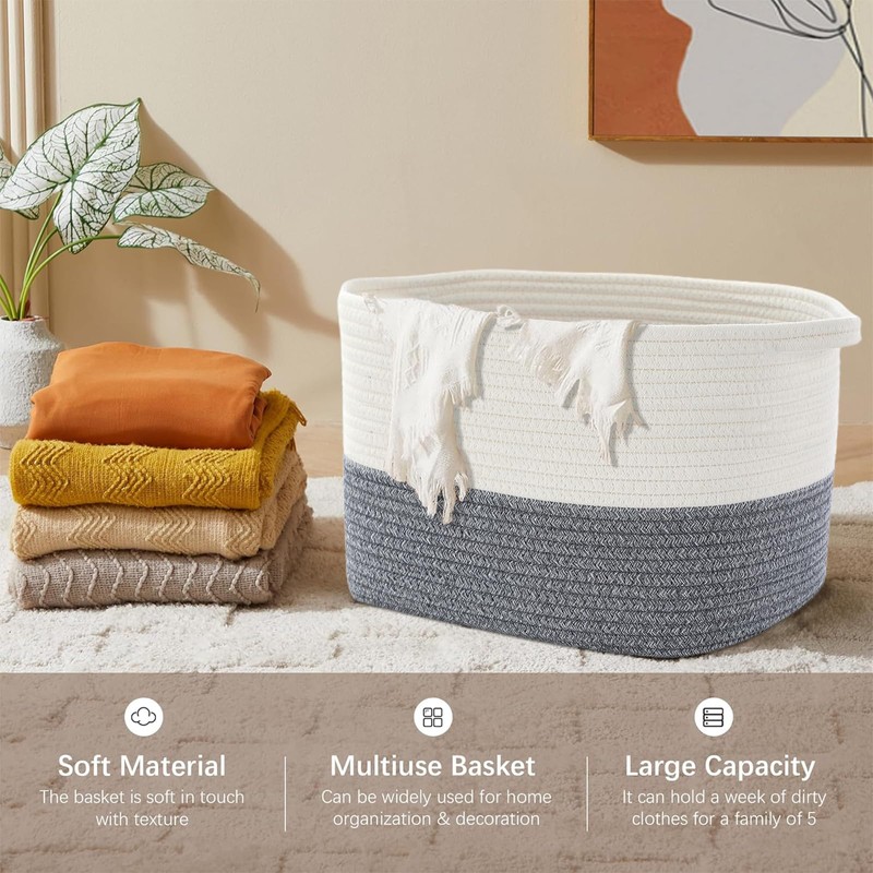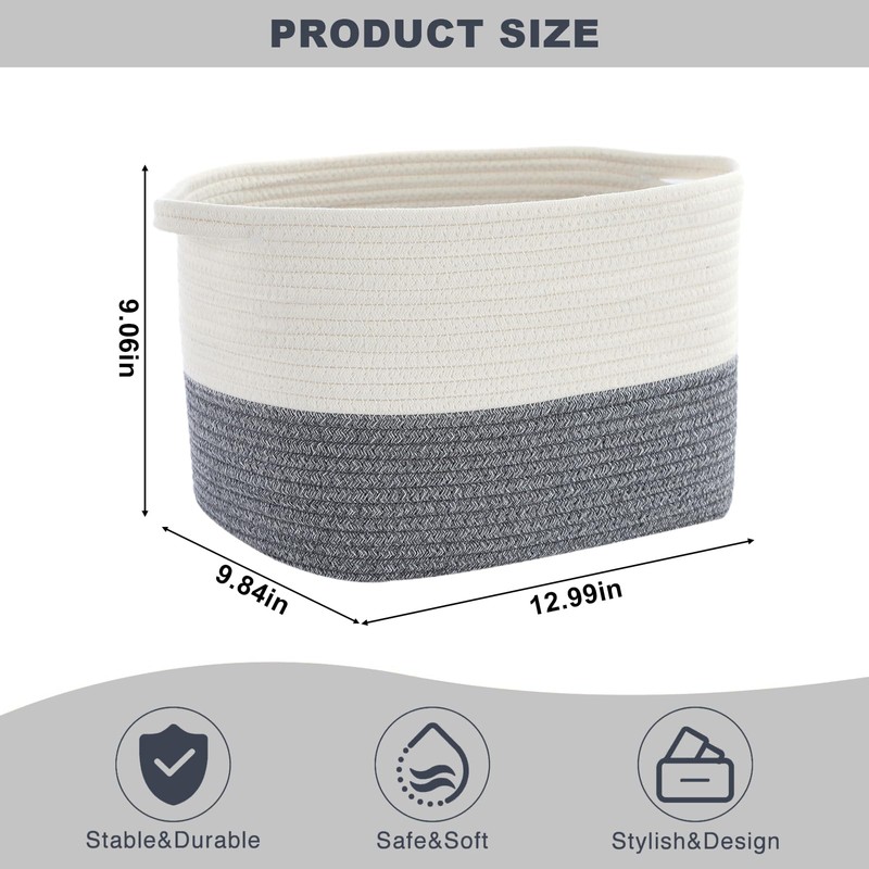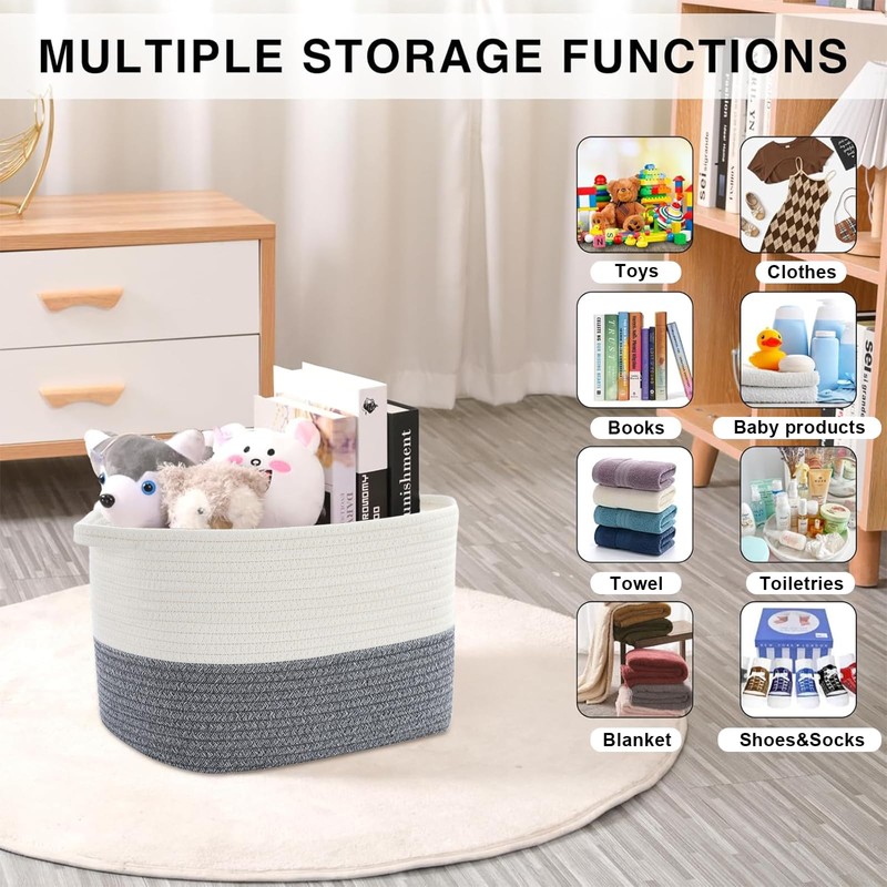 - Soft and Strong Material: The storage basket is made of cotton rope, which is soft to the touch and not easy to deform, making it ideal for family use, especially for toddlers, babies, children and pets. This storage basket is a smart choice for storing clothes, toys, stuffed animals, blankets, and even throw pillows without worrying about scratching clothes or damaging skin.