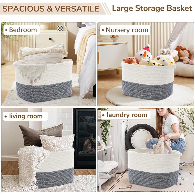- Multifunctional Storage Basket: Woven storage baskets are ideal for keeping your daily home life more organized. Large capacity, convenient storage of more daily necessities. It is the perfect storage basket for living room, bedroom, bathroom, baby room, utility room, game room, classroom. Store household items (towels, toiletries, etc.), office supplies, fruit, snacks, books, baby diapers or toys.