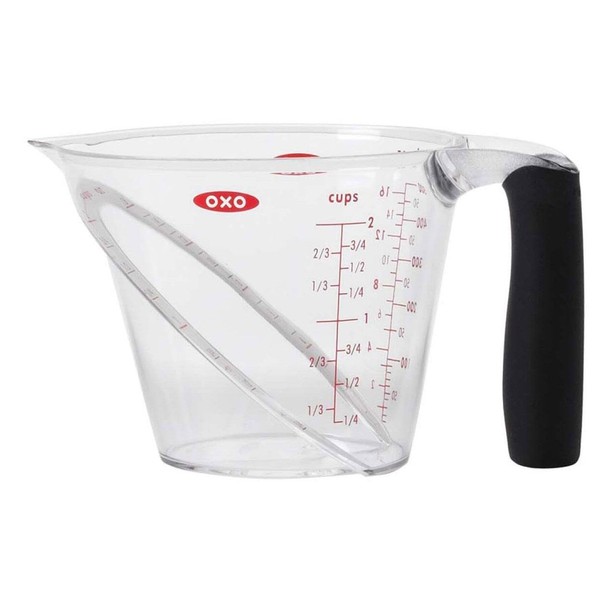 OXO Good Grips abgewinkelter Messbecher 0,5 l. Mit patentierter, schräg nach oben verlaufenden Messskala.