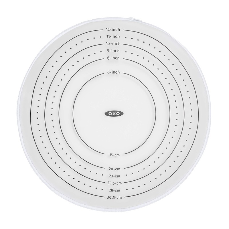 Roll perfectly round crusts for pies, pizzas and more zippered, enclosed bag design keeps rolling pins and countertops clean food-safe silicone is non-stick for effortless dough release measurement markings are easy to read and ensure consistent crusts 14-inch diameter ideal for 9-Inch pie plates