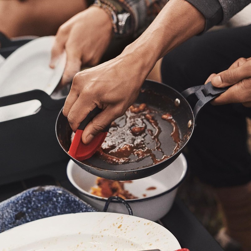 Before you wash a single dish at camp, use the OXO Outdoor 3-in-1 Squeegee & Scraper to clean off any lingering bits of food and grime. (You'll waste less water this way!) It has a flexible silicone side (that can clear off food and wipe away water when it's time for drying), a tough plastic scraper (that can chip away at burnt-on bits) and a stainless steel grill cleaner (with notches that hug the grates). When it's time to pack up, the Scraper just slides into a bag. Dishwasher safe.