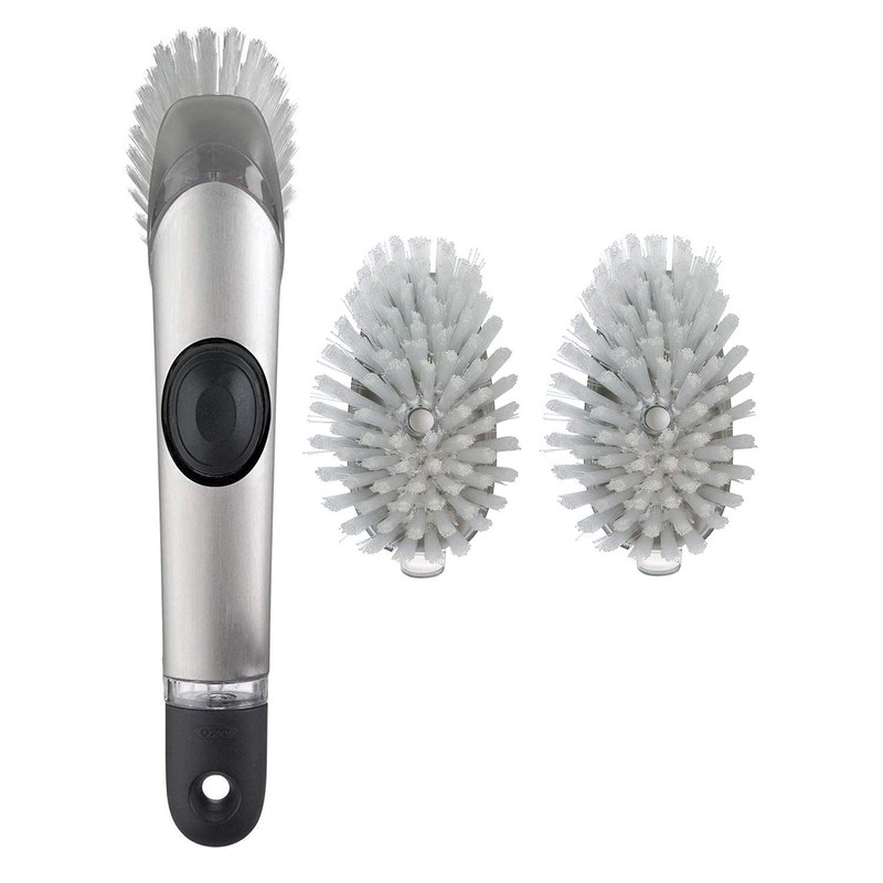 OXO Steel Soap Dispensing Dish Brush with 2 Dish Brush Refills