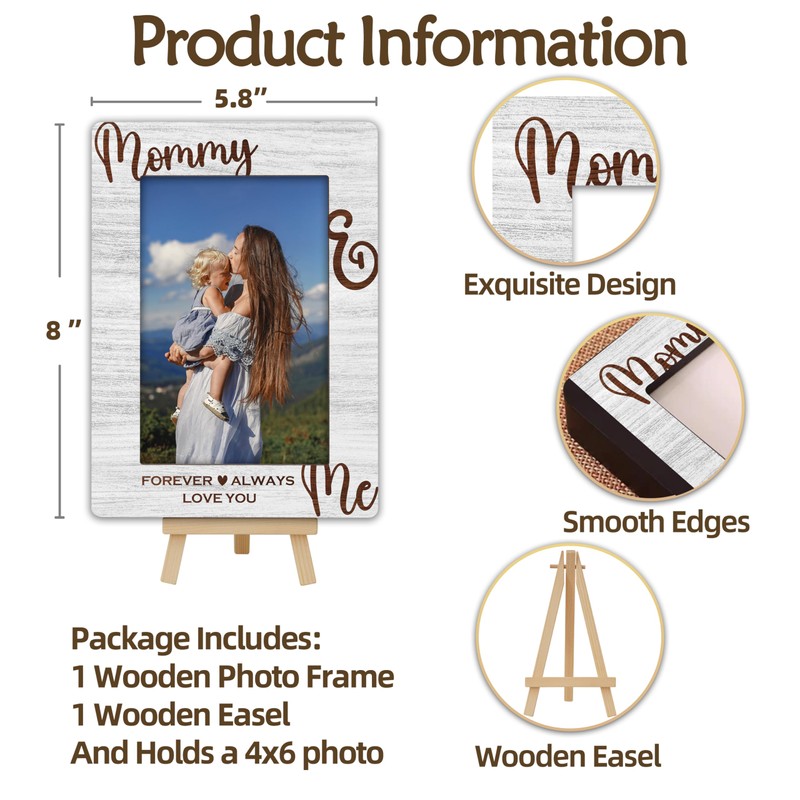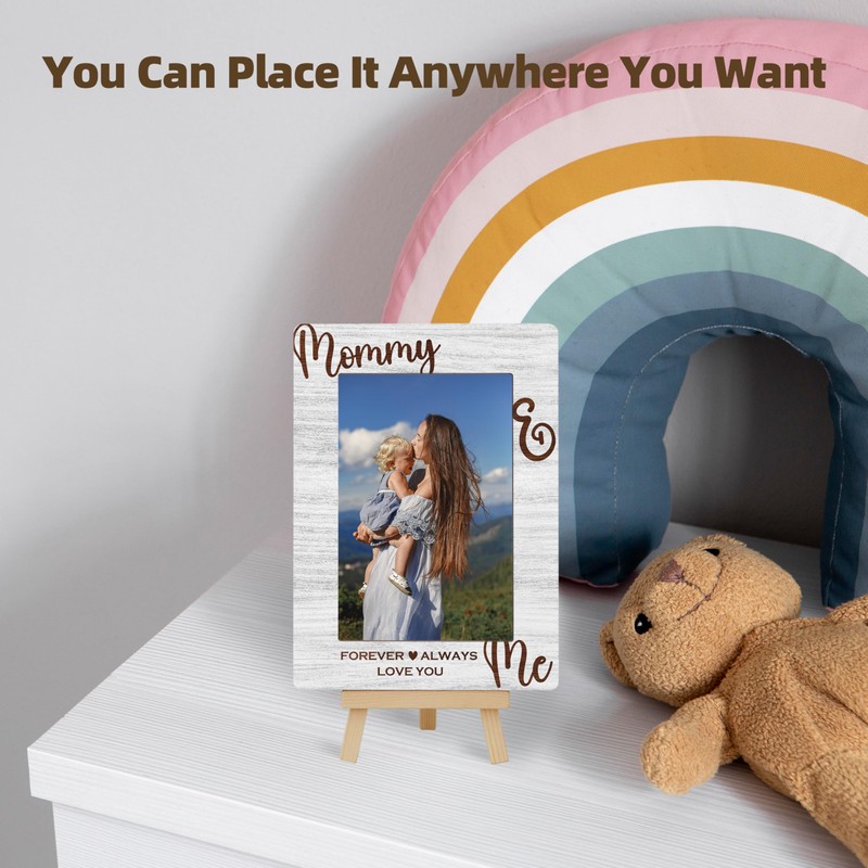 OXRUN Mommy & Me Picture Frame, Mother's Day Gifts Wooden Photo Frame with Easel, Display Photo Insert, 4x6 Picture Frame for Tabletop Display - A16