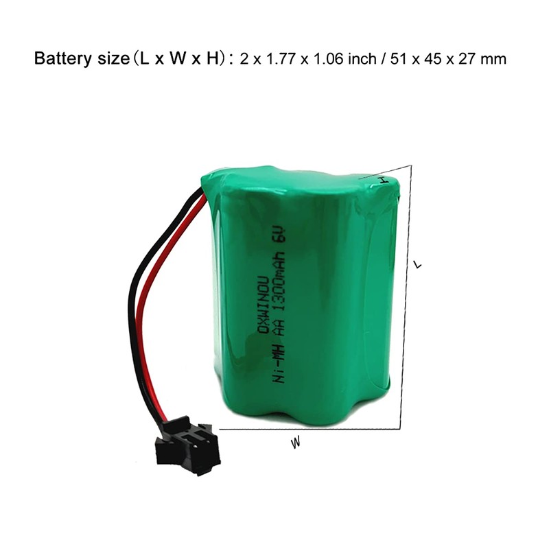 - High capacity&Small Volume:6V1300mAh Ni-MH battery powered smoothly,last long time.The battery capacity more higher,will more work long time for the tools.Advanced Ni-MH battery technology, no battery memory effect.Battery pack size: 51 x 45 x 27 mm / 2 x 1.77 x 1.06 inch, and built-in standard SM 2-pin connector.
