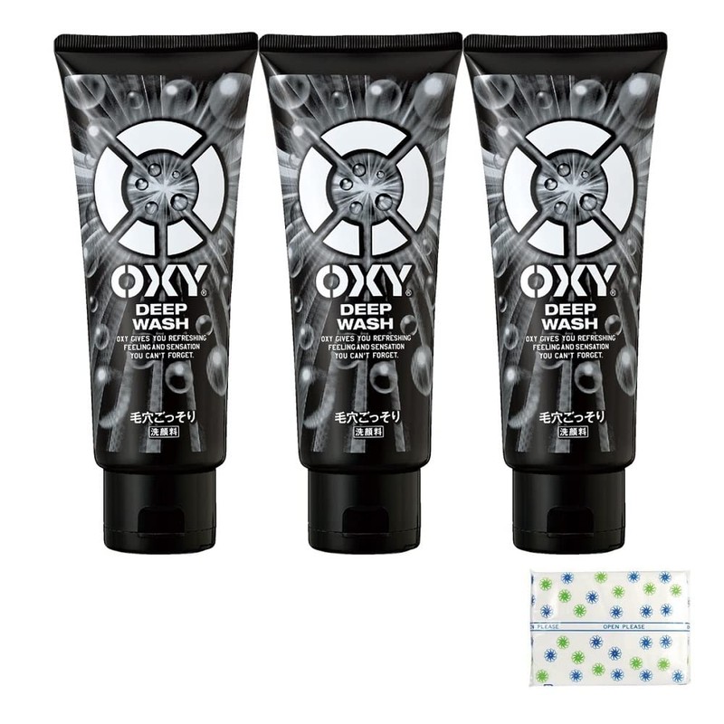 Oxy Deep Wash with Extra Small Charcoal Scrub, Large Capacity Facial Cleanser, 7.1 oz (200 g) x 3, Bonus Set