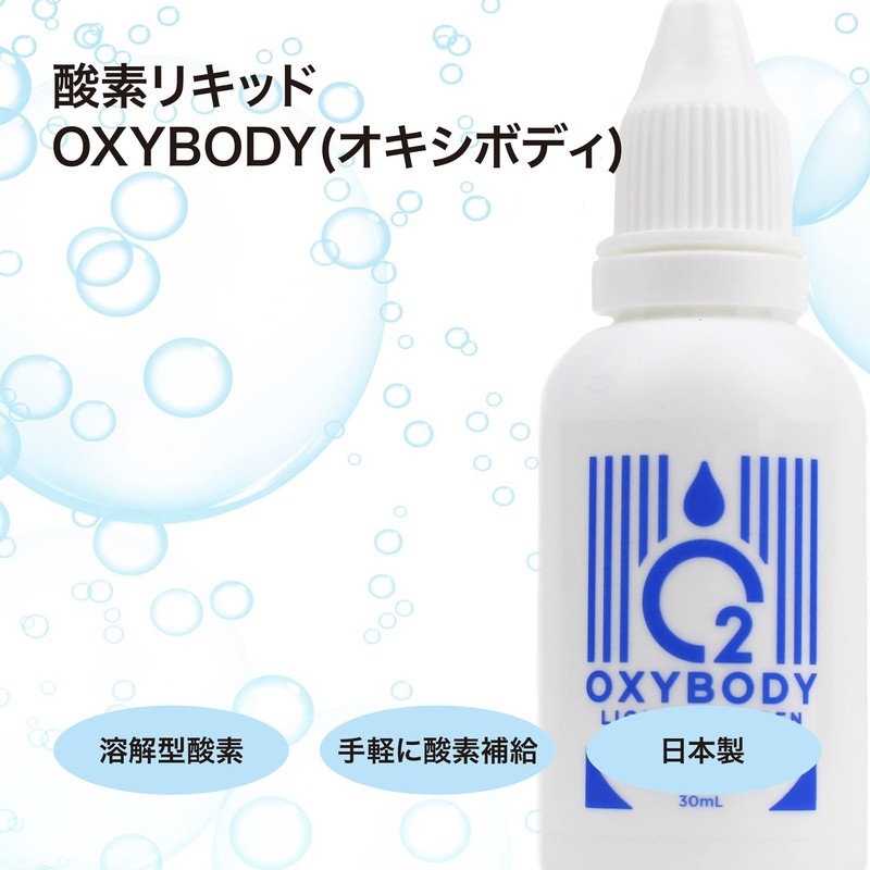 OXYBODY【酸素を飲む】リキッドタイプの濃縮酸素飲料です。300mlのお水などに1~3滴混ぜて飲むだけの簡単な使い方。いつでもどこでも溶解型酸素を摂取できます。