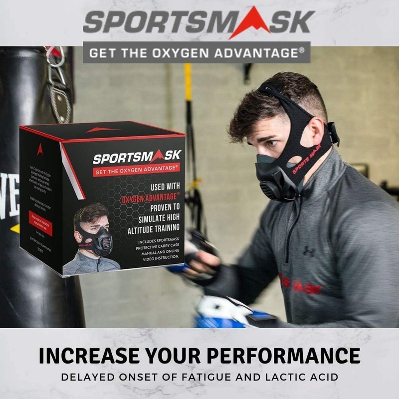 The SportsMask set includes a protective carry case, a manual, access to the online video access to the Oxygen Advantage training and the Oxygen Advantage SportsMask.