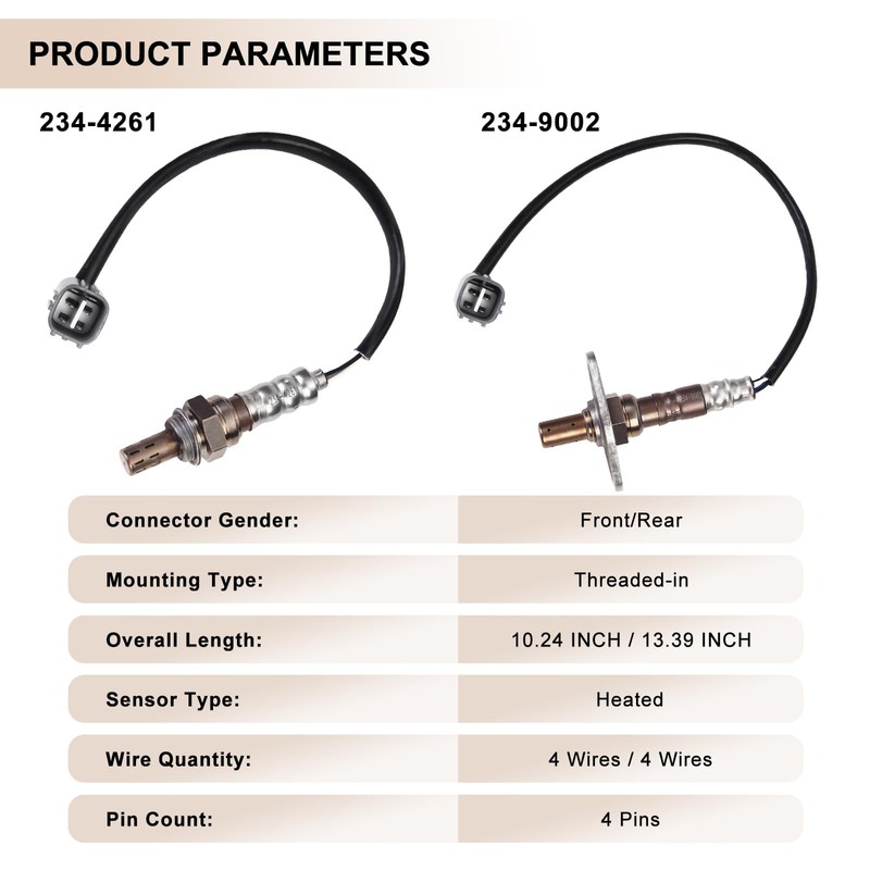 • Replacement Part No: Oxygen Sensor Upstream Downstream 234-9002 , 2349002 , 8946735010 , 89467-35010 , 2132857 , 2132858 , 89467-35011 , 8946735011 , 8946735040 , 89467-35040 , 8946735090 , 89467-35090 ; 234-4261 , 234-4261 , 89465-60200 , 89465-60250 , 89465-04290 , 89465-35690 , 89465-0R020. Before purchasing an O2 sensor, please carefully check your vehicle's year, brand and model, image, and part number to confirm compatibility