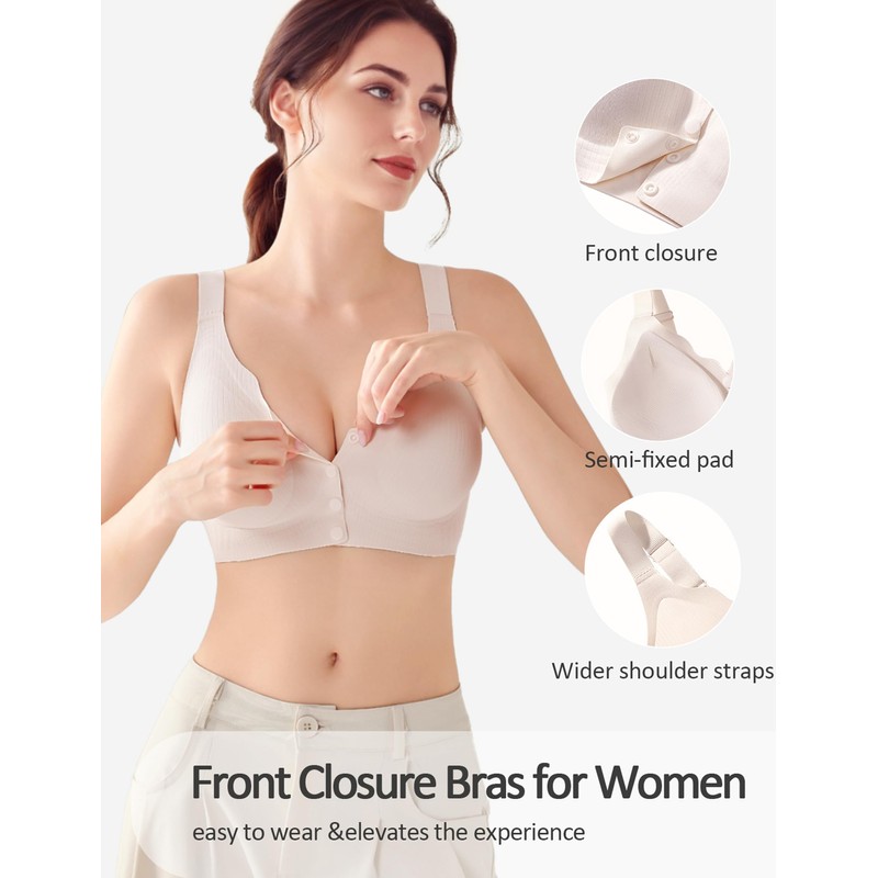 OXYIBRAS Front Closure Bras for Women Comfort Wireless Bar Supportive No Underwire Seamless Post Surgery Bralettes Skin XL