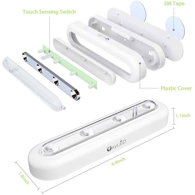 - SUPER-BRIGHT TAP LIGHTS W/ 140 DEGREE ROTATION: With 4 bright LEDs, each OxyLED T-01 touch sensor light outputs up to 80 lumens, which is bright enough to make sure you never stumble in the dark; Also, this touch-sensing light can be rotated back and forth by 70° , you can align the light in the direction you want