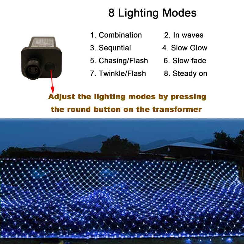- Net Lights Outdoor: Made of PVC plastic, flexible, super bright and long operating life. These tree warp mesh lights are IP44 waterproof. You can use the decorative net lights under normal weather conditions