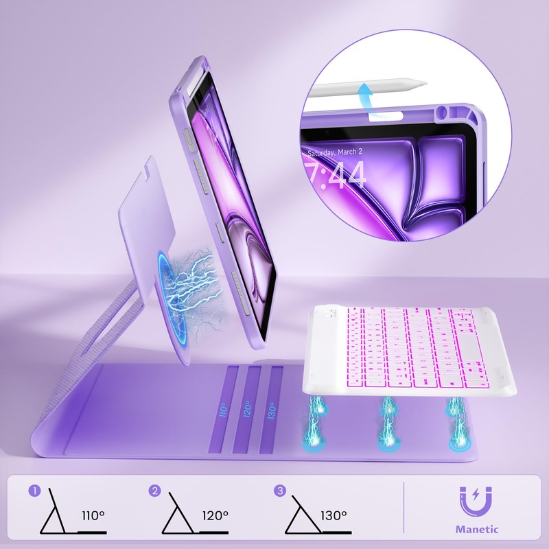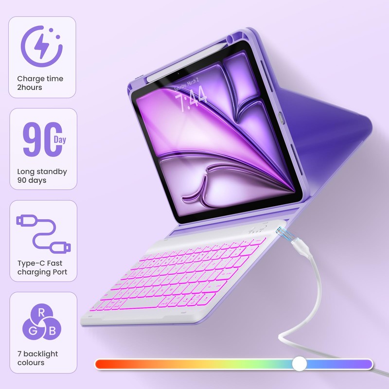 • Detachable Backlit Keyboard7-color backlit keyboard for iPad Air 5th generation with ergonomic and mechanical scissor keys for a comfortable and noise-free typing experience, even in low light environments.