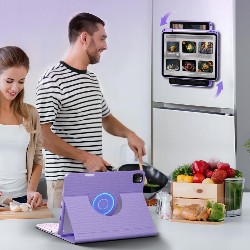 • Upgraded Magnetic Shell and Three-Grooves Design Case The upgraded shell of the iPad Air 5th Generation Keyboard Case can be individually adsorbed on any metal, thus improving the usage scenarios and making it perfect for studying, working, reading or watching videos. Also features 3 grooves for adjustable viewing angle and stable positioning.