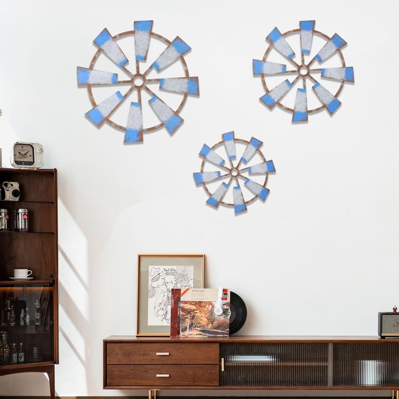 OYEFLY 3 Pcs Wood Windmill Wall Decor,Farmhouse Wooden Windmill Decor (Style 1)