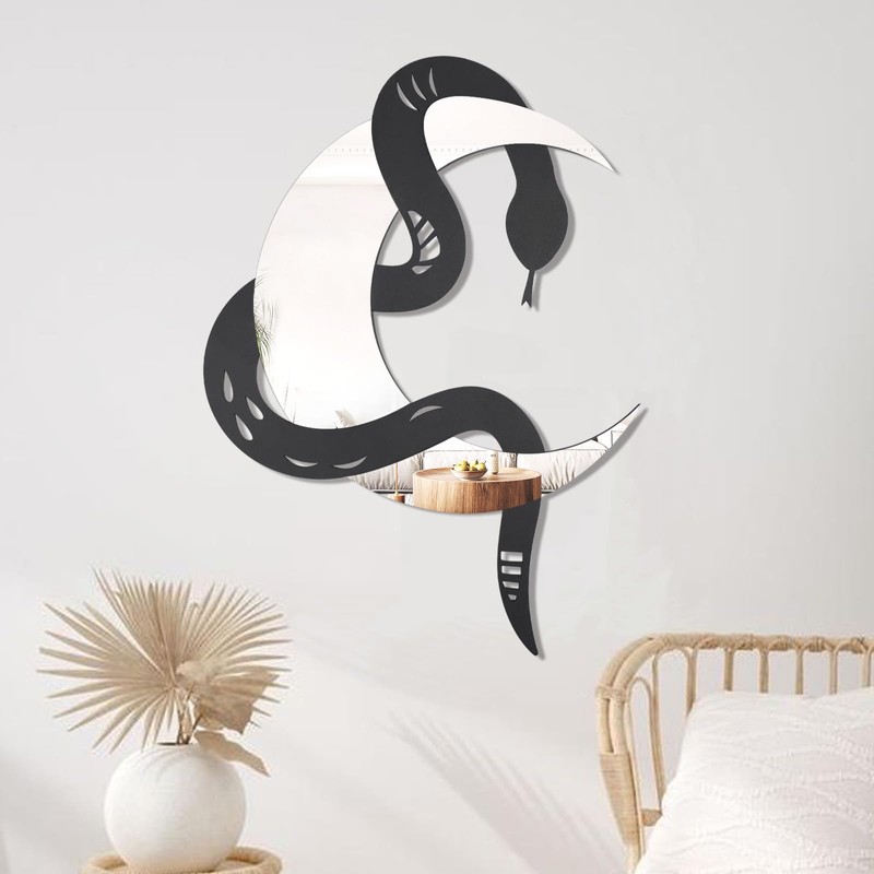 OYEFLY Black Snake and Crescent Moon Mirror Wall Decor,Gothic Snake Decorative Mural (style 1)