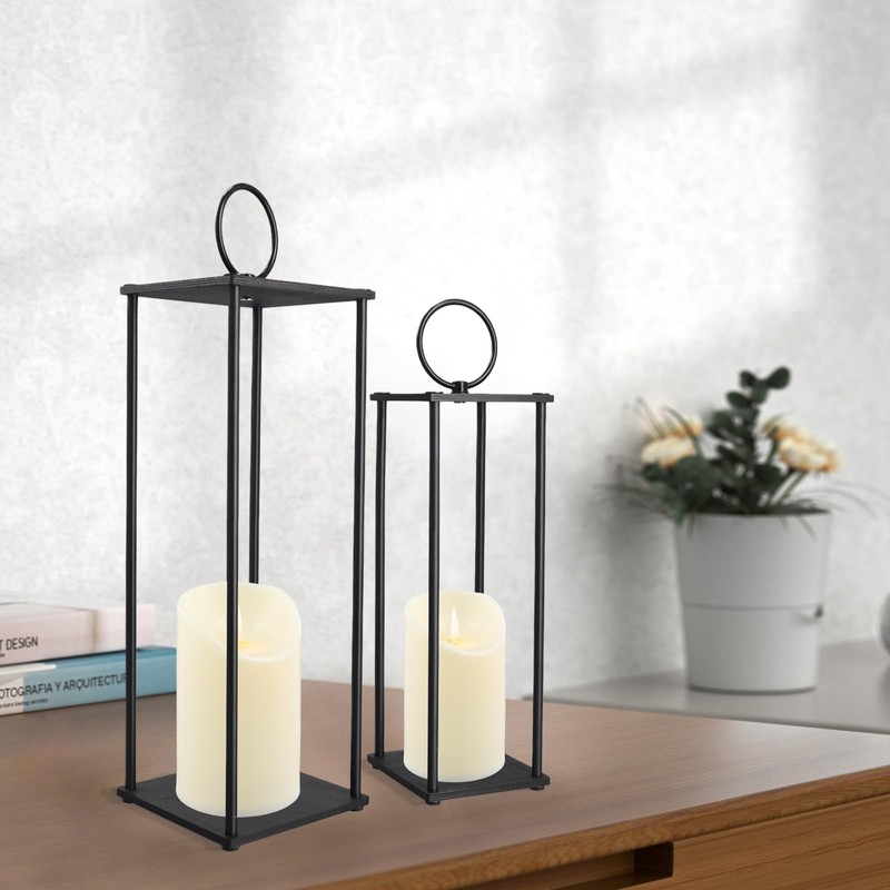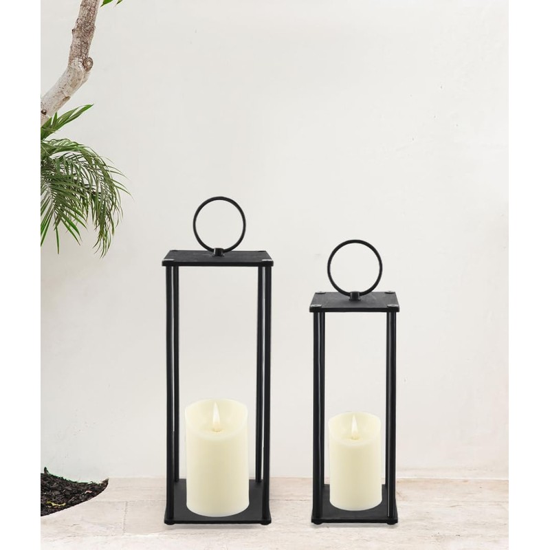 OYEFLY Rustic Farmhouse Lantern Decor,Lanterns Decorative Outdoor,Modern Farmhouse Lantern Decor Set of 2 (Black)