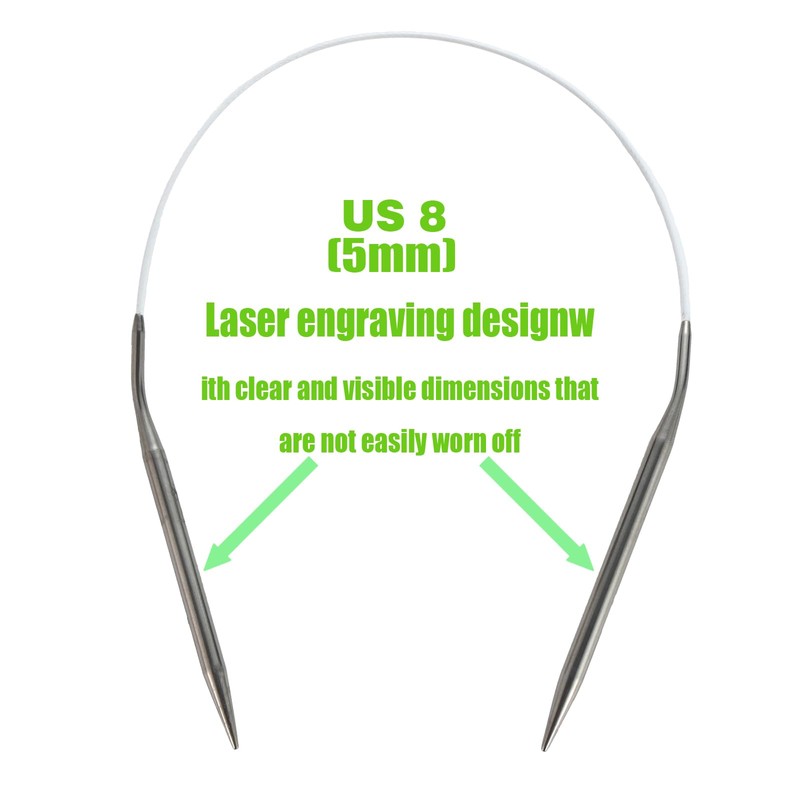 - Our steel knitting needles feature smooth and secure joins between the needle and cord, making them less prone to breakage or snagging of your yarn. Markings indicate US needle sizes and millimeter needle sizes.