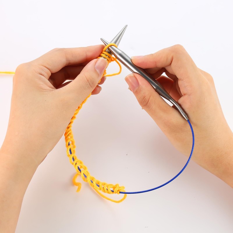 - The round knitting needles come in different colors for each size, and the bright cable color makes it easy to find and adds an attractive touch to your knitting activities.