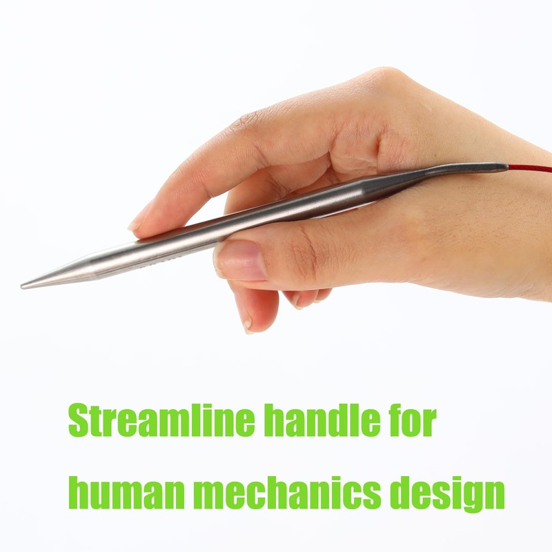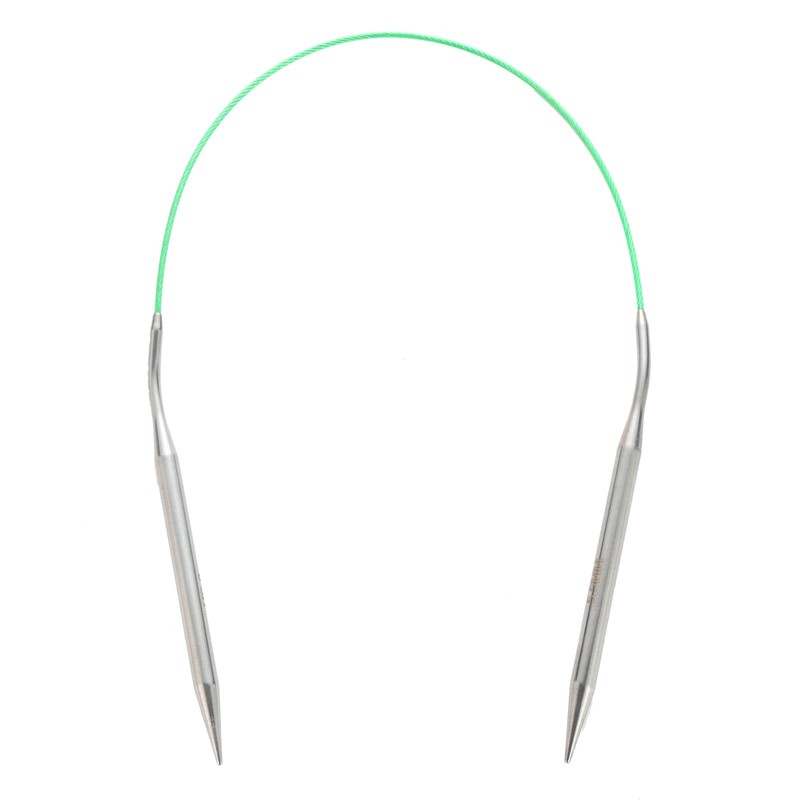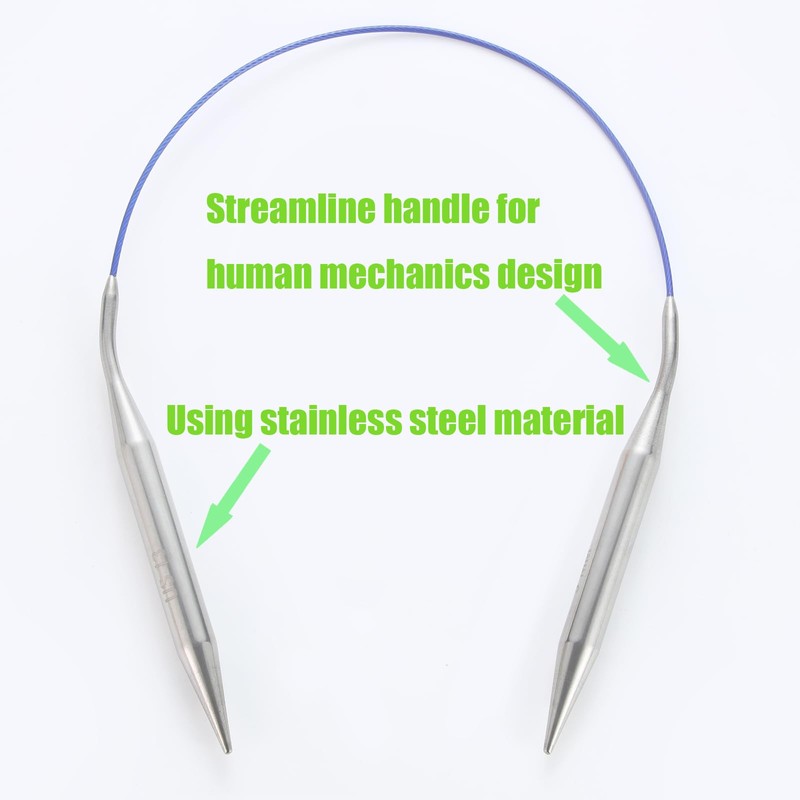 - The round knitting needles are made of stainless steel with semi-pointed tips. The cable is made of durable colored steel cable, and the tubular construction keeps these needles firmly attached to the cable. The ergonomic design feels natural when using the tubes for the tips.