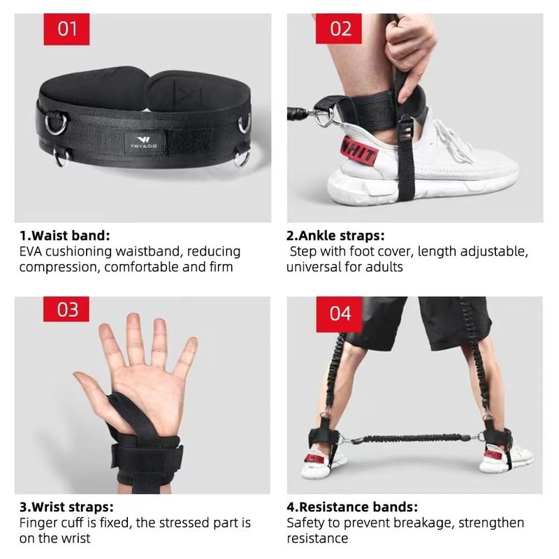 - Adjustable Thicken Waist and Ankle Belt Waist belt Make It Suitable For Most People: The waist strap, ankle strap and waistband are all adjustable and thickened. As long as you are not too slim or super fat, you will be able to ware it. The adjustment range is suitable for most people. What’s more, the belt are all thickened, which let you feel more power when exercising