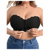 OYOANGLE Women's Plus Size Front Closure Push Up Strapless Bandeau Bra Wireless Tube Bralettes with Clear Strap Black 3X-Large Plus