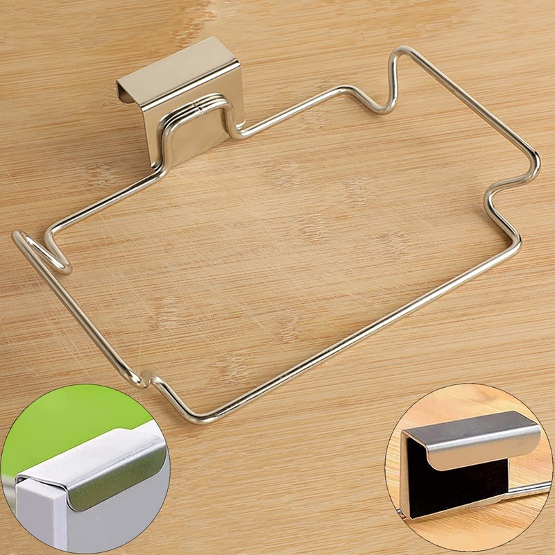 - Simply hang the trash bag holder on the cabinet door. No drilling and installation required. So convenient while cooking, storage of kitchen waste and scraps easier! The bag holder also features a padded backing to protect the cabinets and drawers from scratches.