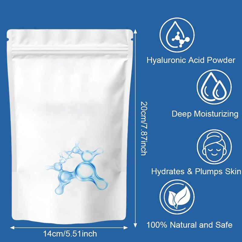- HYALURONIC ACID SKIN CARE Practical hyaluronic acid powder moisturizes dry skin and smooths wrinkles. It provides intensive moisture and maintains the elasticity of the skin for a youthful and healthy look.