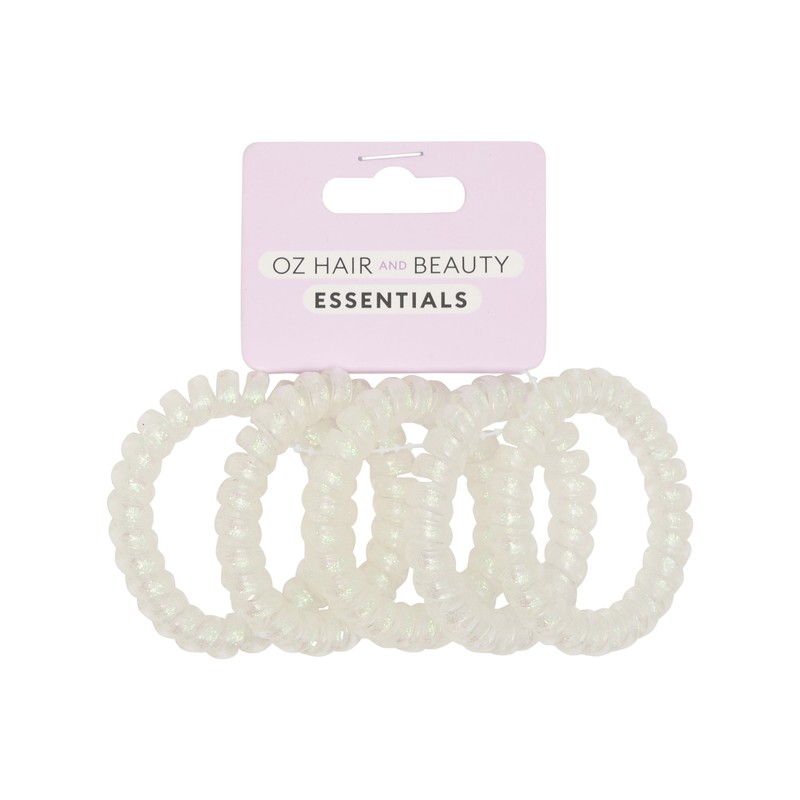 Oz Essentials Spiral Hair Ties 5 Pack - White Sparkle