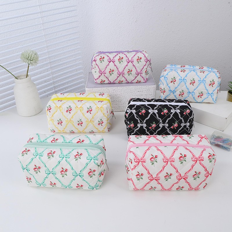 - Stylish and Versatile Design: Adorned with a charming floral pattern, this quilted cosmetic bag is both cute and elegant, making it a perfect travel essential. Its unique quilted design not only adds a touch of sophistication but also ensures the bag remains neat and attractive. Whether you use it as a cosmetic organizer, toiletry bag, or even a small shopping bag, this versatile pouch is designed to meet all your needs. Available in 6 stunning colors, you’re sure to find the perfect match for your style!