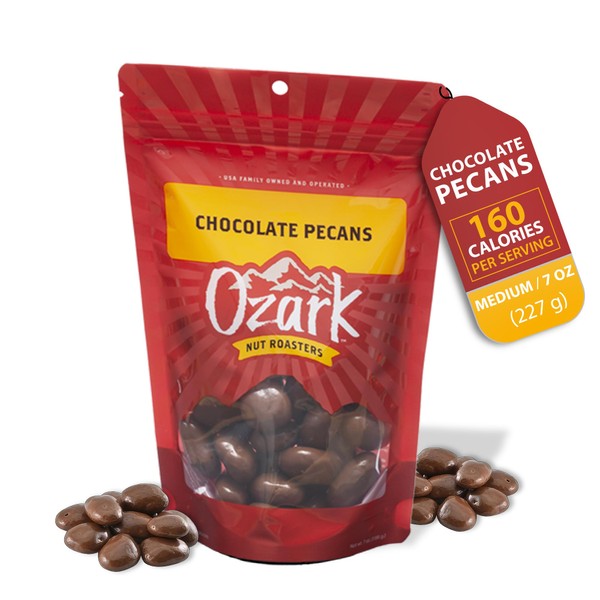 OZARK NUT ROASTERS, Chocolate-Covered Pecans, Chocolate Flavored Snack Nuts, World-Class Gourmet Candied Savory Peanuts, Resealable Pack (7.0 oz)