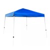 Make outdoor events even cooler with this Ozark Trail 10' x 10' Slant Leg Canopy. It's made with a powder-coated steel frame that provides long-lasting durability and the blue polyester top provides 64 square feet of shade with a UPF of 50+. Push-buttons on the frame allow it to lock safely into place and adjust the height as needed. This shelter includes stakes and guy ropes. Use the canopy for outdoor picnics, at the campground or at the ball fields.