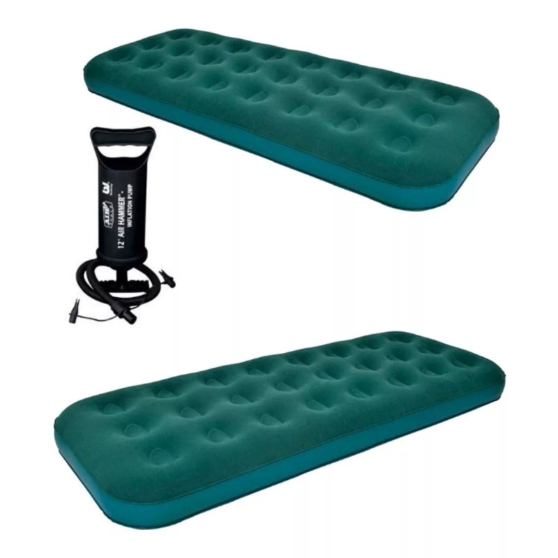 2 COLCHÓN INFLABLE INDIVIDUAL + BOMBA DE AIRE MANUAL