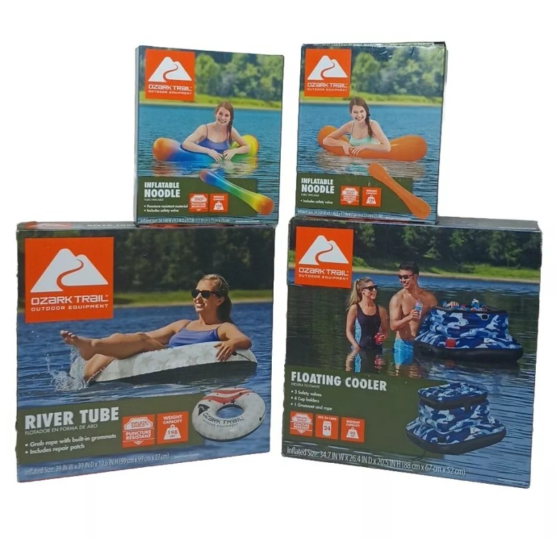 Ozark Trail 34.5" Blue Camo 9.43 gal. Inflatable Floating Cooler + Tube Float and 2 small floats