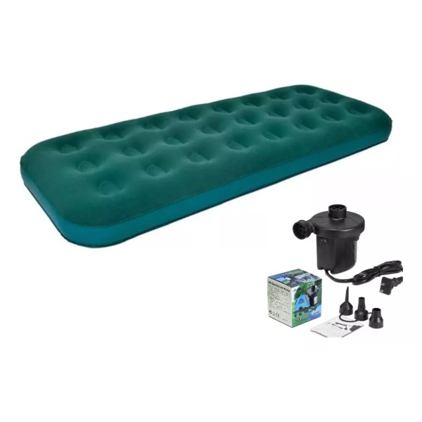 KIT DE COLCHON INFLABLE INDIVIDUAL + BOMBA DE AIRE ELECTRICA JY019