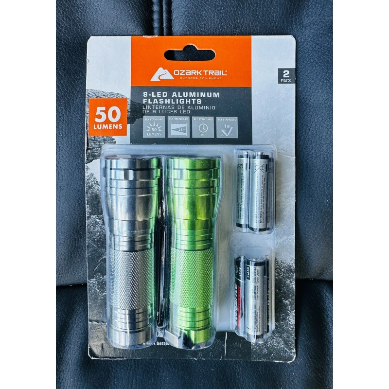 Ozark Trail Outdoor Equipment 9 LED Aluminum Flashlight 50 Lumens 2 Pack Camping
