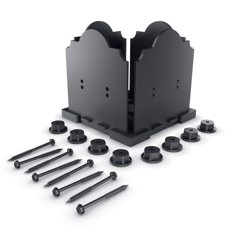 - Includes: 1 Post Base Plate; 4 Decorative Plates; 8 Hex Cap Nuts; (8) 1/4 by 3-3/4-inch OWT Timber Screws