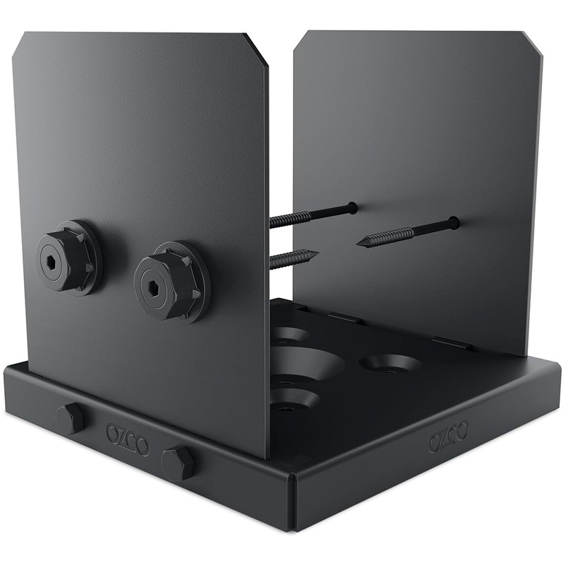 Ozco Ironwood Lite 8x8 Post Base Kit, Includes 1 Post Base Plate, 2 Decorative Plates, 4 Hex Cap Nuts, OWT Timber Screws, Galvanized Steel for Pergolas | 52109