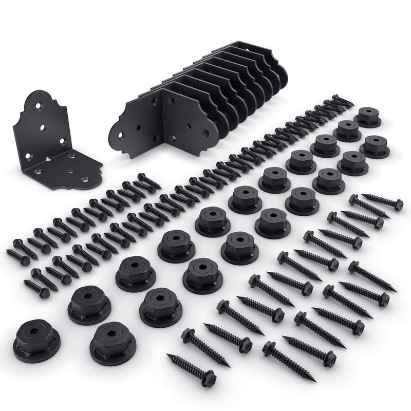 - Material constructed of pre-galvanized steel with a black powder coated finish; No Pre-Drilling Required