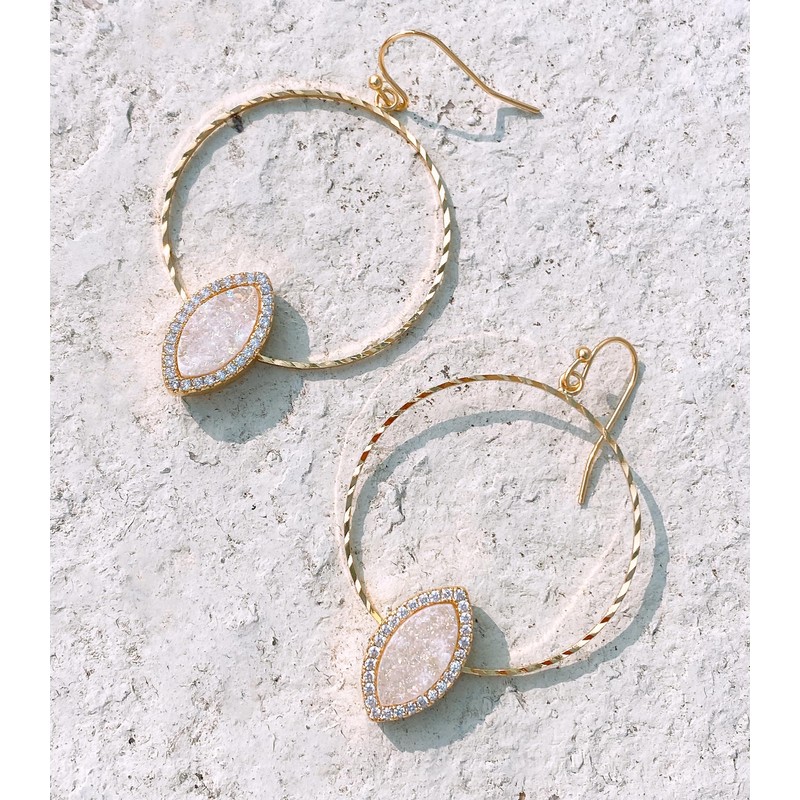 - Unique Design: These stunning dangle earrings feature a twisted hoop design with an eye-catching marquise-shaped turquoise druzy stone centerpiece.