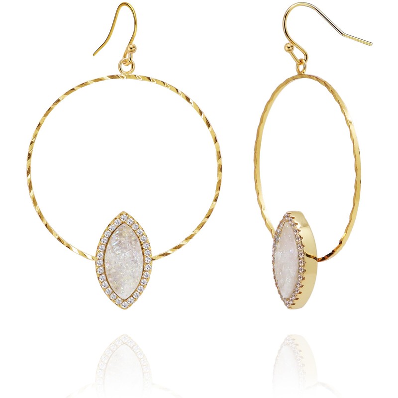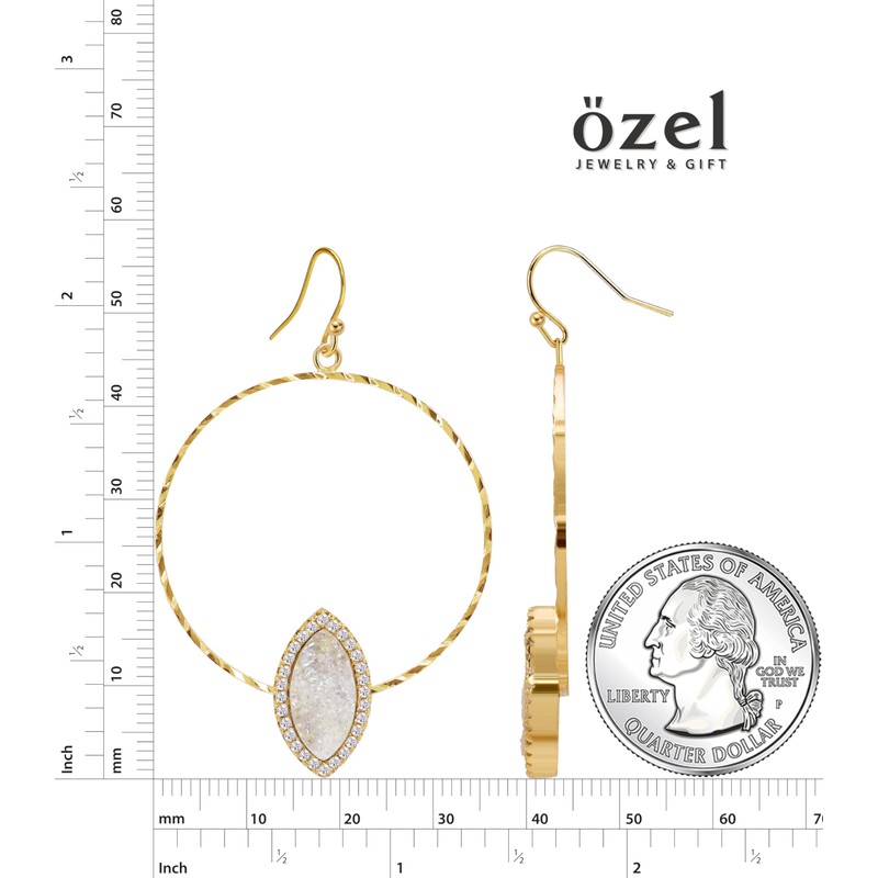 Ozel - Druzy Drop and Dangle Earrings for Women - Iridescent Drusy and Cubic Zirconia, 14K Gold-Plated Delicate Fashion Jewelry_3M3363 (3M3363_White Opal)