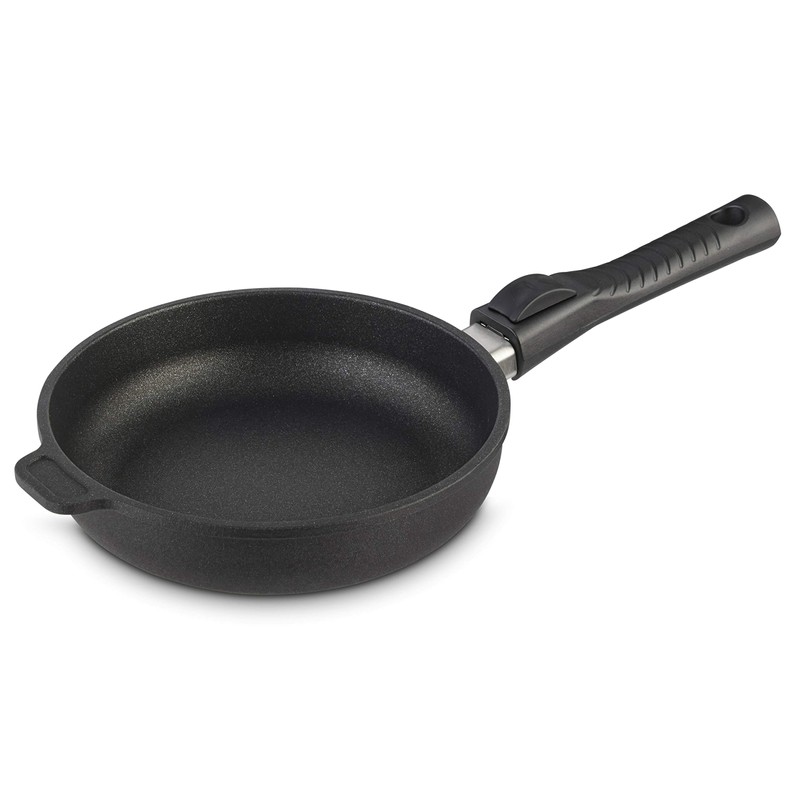 - Boasts an indestructible aluminum core that is 3 times thicker than a typical frying pan, a magnetized AISI 430 layer for use with induction stoves, and a comfortable heat-resistant handle that detaches easily, for space-saving storage