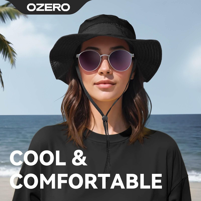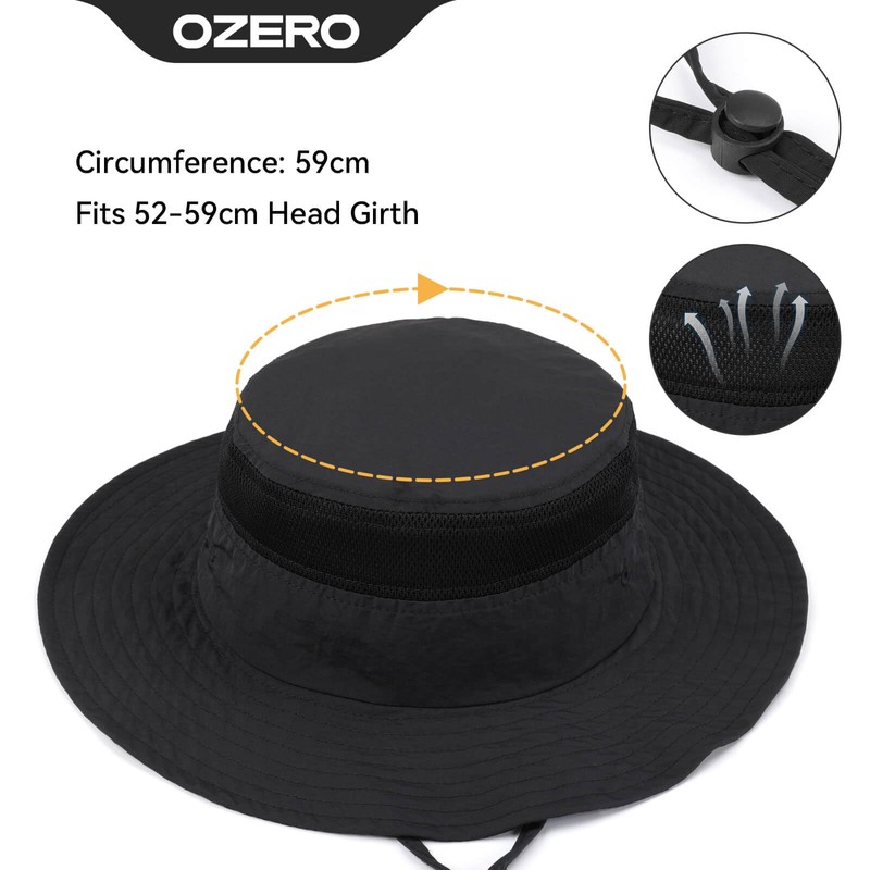 OZERO Sun Hat for Women Men: Wide Brim Packable Boonie Bucket Fishing Hat UV Protection for Hiking Safari Beach Vacation (UK, Alpha, One Size, Black)