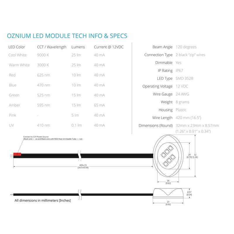- SURFACE MOUNT: They can be mounted with the included 3M adhesive. Each module uses 6 PLCC-2 style surface mount LEDs with a wide 120 degree light beam.