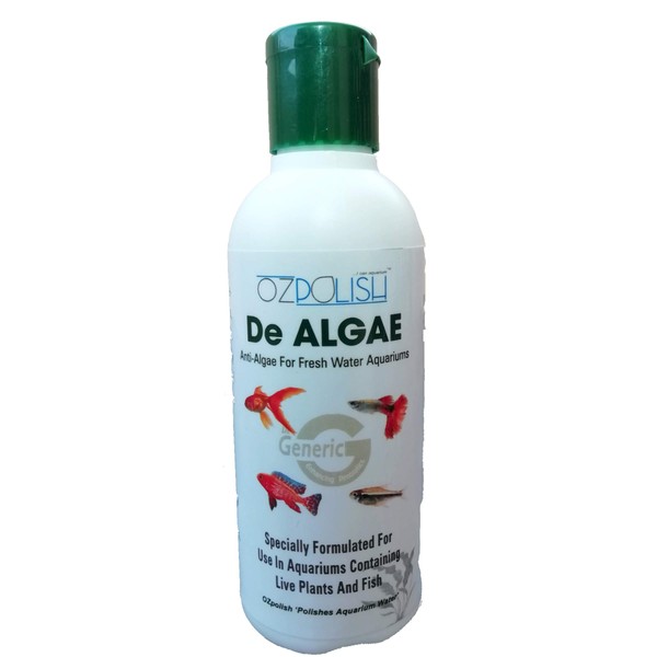 - OZpolish De Algae though is especially formulated for planted aquariums, it's application also extends with satisfactory results in non planted aquariums, artificial ponds or fountains.