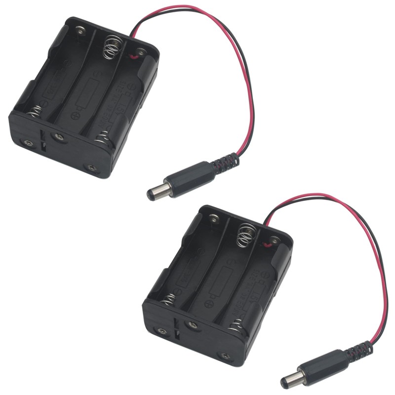 OZXNO 2 Pcs 6xAA Power Box 6V Black Battery Pack Holder Case Box with DC Plug Barrel Jack Connector for Wireless Camera Halloween LED Light Strip