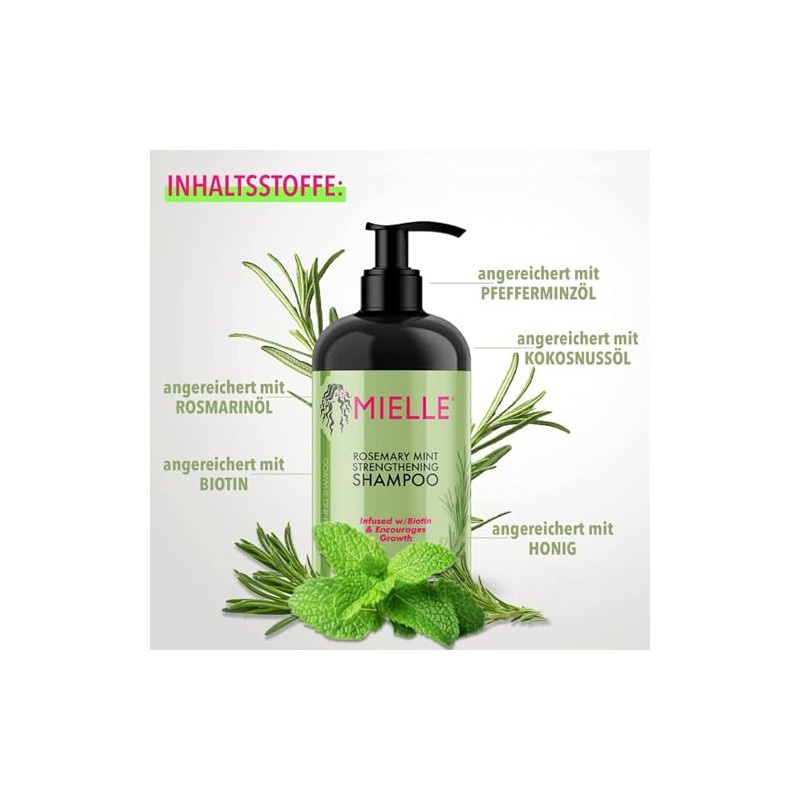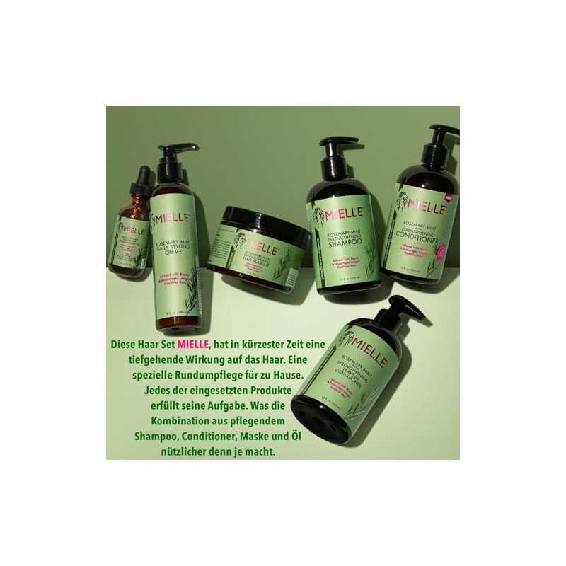 - [KRAFTVOLLE INHALTSSTOFFE] Jedes Produkt in unserem Set ist mit Biotin angereichert, das bekannt dafür ist, die Haarstruktur zu stärken und Haarausfall zu reduzieren. Die natürlichen Extrakte von Rosmarin und Minze erfrischen und beruhigen die Kopfhaut, während sie das Haar nähren und dessen natürlichen Glanz wiederherstellen.